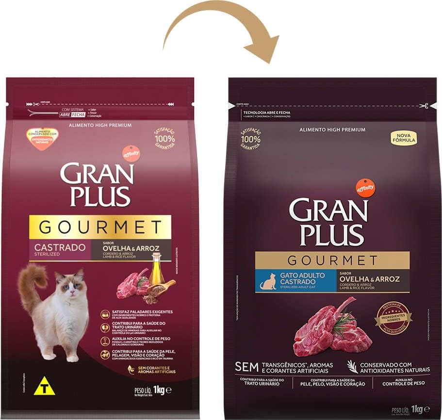Granplus gourmet gato adulto castrado sabor ovelha & arroz é um alimento feito com ingredientes nobres e proteína de alta qualidade, que proporcionam uma experiência de sabor para satisfazer os gatos com paladares exigentes, enquanto os nutre. Além disso, é conservado com antioxidantes naturais. Sem transgênicos, aromas e corantes artificiais conservado com antioxidantes naturais contribui para a saúde do trato urinário: desenvolvido com balanço de minerais para auxiliar no controle do ph urinário. Auxilia no controle de peso: com carnitina e teores reduzidos de calorias e gorduras. Contribui para a saúde da pele, pelo, visão e coração: com aminoácidos essenciais para favorecer a saúde da pele e pelo, além de ser rico em taurina para o adequado funcionamento do coração e visão.