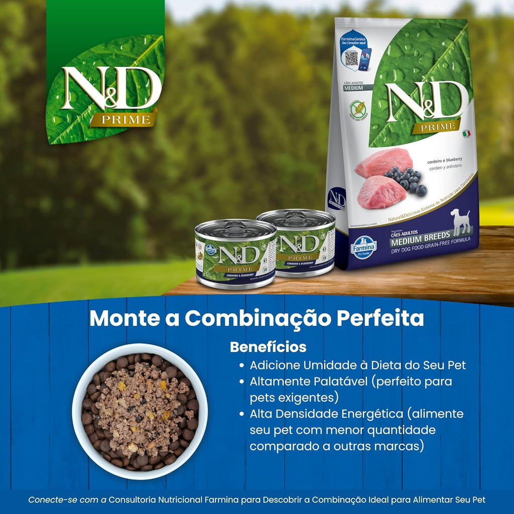 N&D Prime Ração Farmina Cordeiro e Blueberry Cães Adultos Raças Médias - 10,1kg