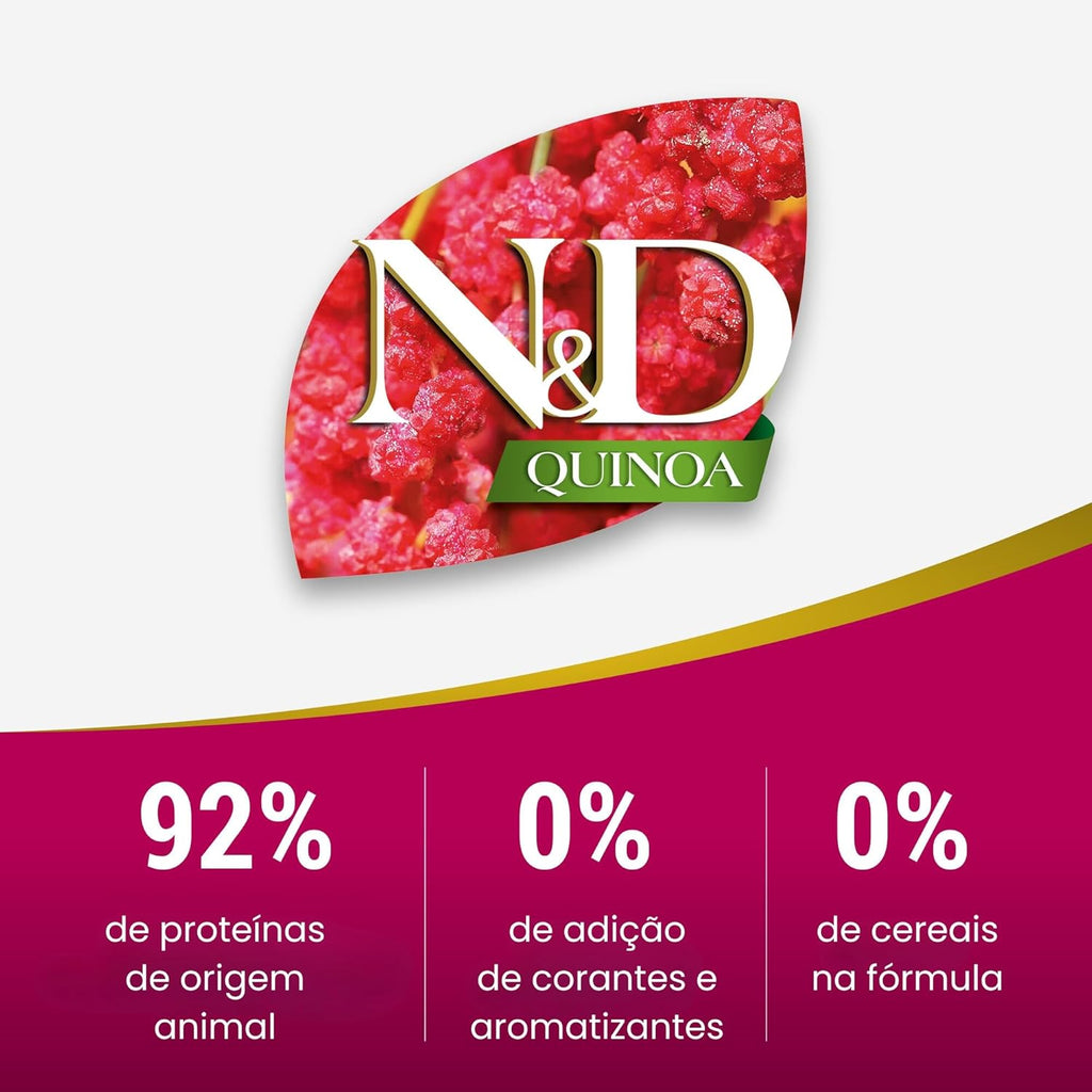 A Ração Farmina N&D Quinoa é uma fórmula italiana e foi criada especificamente com caracteristicas funcionais. Todos os seu ingredientes foram separados e testados para proporcionar qualidade de vida e bem estar, respeitando a natureza do pet.