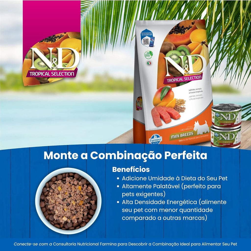 A Ração Seca N&D Tropical Selection é uma escolha excepcional para o bem-estar do seu pet, uma vez que combina grãos ancestrais e uma variedade de frutas tropicais, proporcionando uma nutrição completa e deliciosa. As frutas tropicais, conhecidas por suas propriedades nutricionais e riqueza em antioxidantes naturais, são harmoniosamente misturadas com grãos ancestrais de baixo índice glicêmico, como espelta e aveia, que promovem a sensação de saciedade, tornando esta ração irresistível para seu pet.