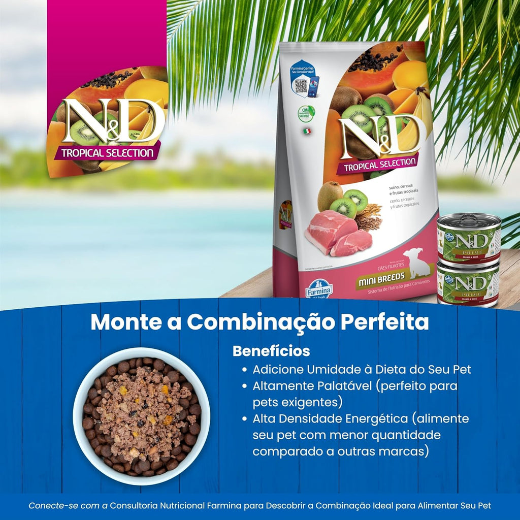 A Ração Seca N&D Tropical Selection é uma escolha excepcional para o bem-estar do seu pet, uma vez que combina grãos ancestrais e uma variedade de frutas tropicais, proporcionando uma nutrição completa e deliciosa. As frutas tropicais, conhecidas por suas propriedades nutricionais e riqueza em antioxidantes naturais, são harmoniosamente misturadas com grãos ancestrais de baixo índice glicêmico, como espelta e aveia, que promovem a sensação de saciedade, tornando esta ração irresistível para seu pet.
