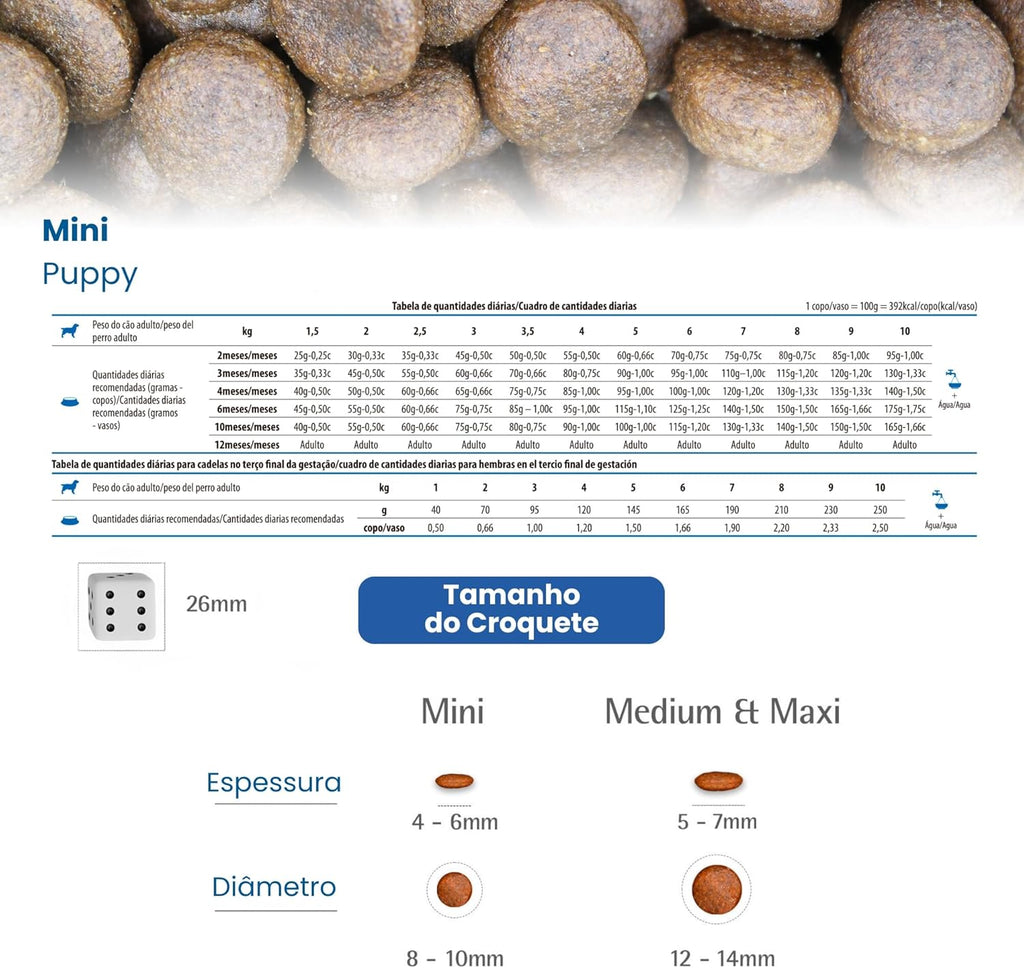 - Alimento completo e balanceado para cães filhotes de raças pequenas e para cadelas no terço final da gestação e em lactação
