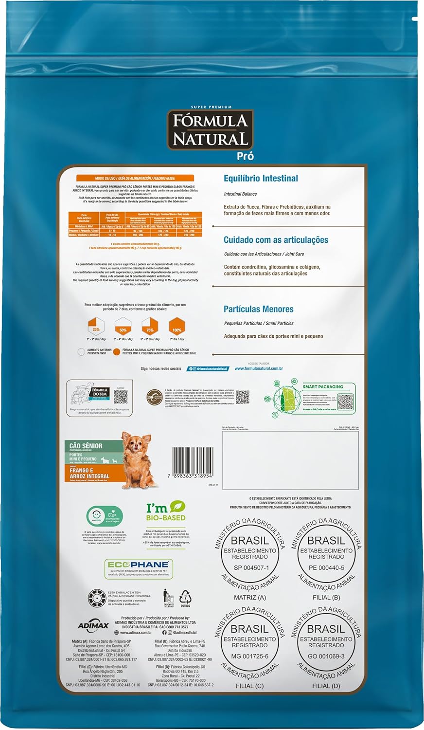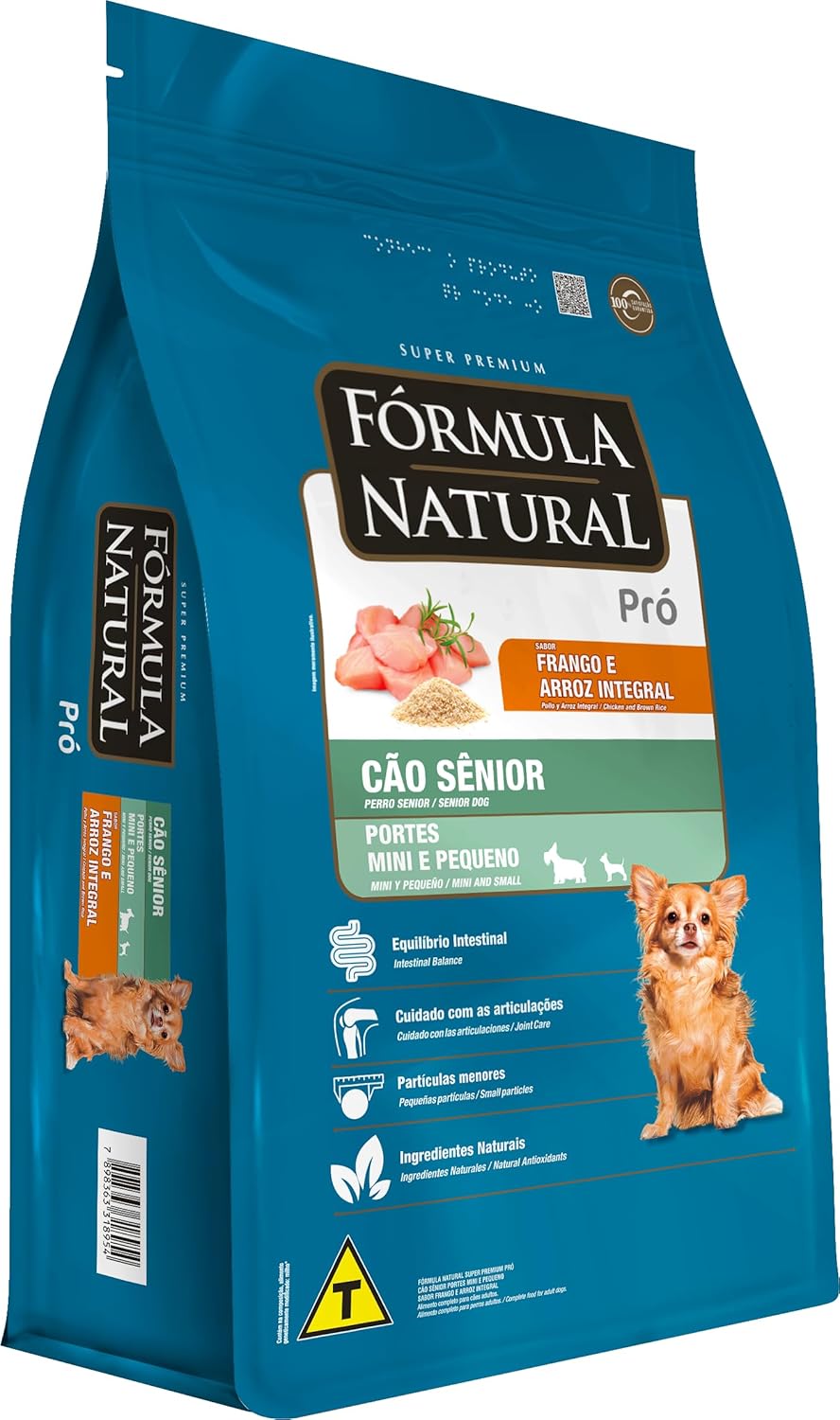 Desenvolvida por médicos veterinários, a linha Fórmula Natural Pró oferece uma nutrição de alta qualidade para cães. Fórmula Natural Super Premium Pró Cão Sênior Portes Mini e Pequeno Sabor Frango e Arroz Integral auxilia na saúde intestinal, contribui para uma pelagem bonita e saudável, além de promover cuidado com a saúde oral e das articulações. Disponível no sabor frango e arroz integral, oferece todos os cuidados para promover saúde, longevidade e qualidade de vida aos cães adultos. Formulada com ingredientes naturais, não contém corantes e aromatizantes artificiais.